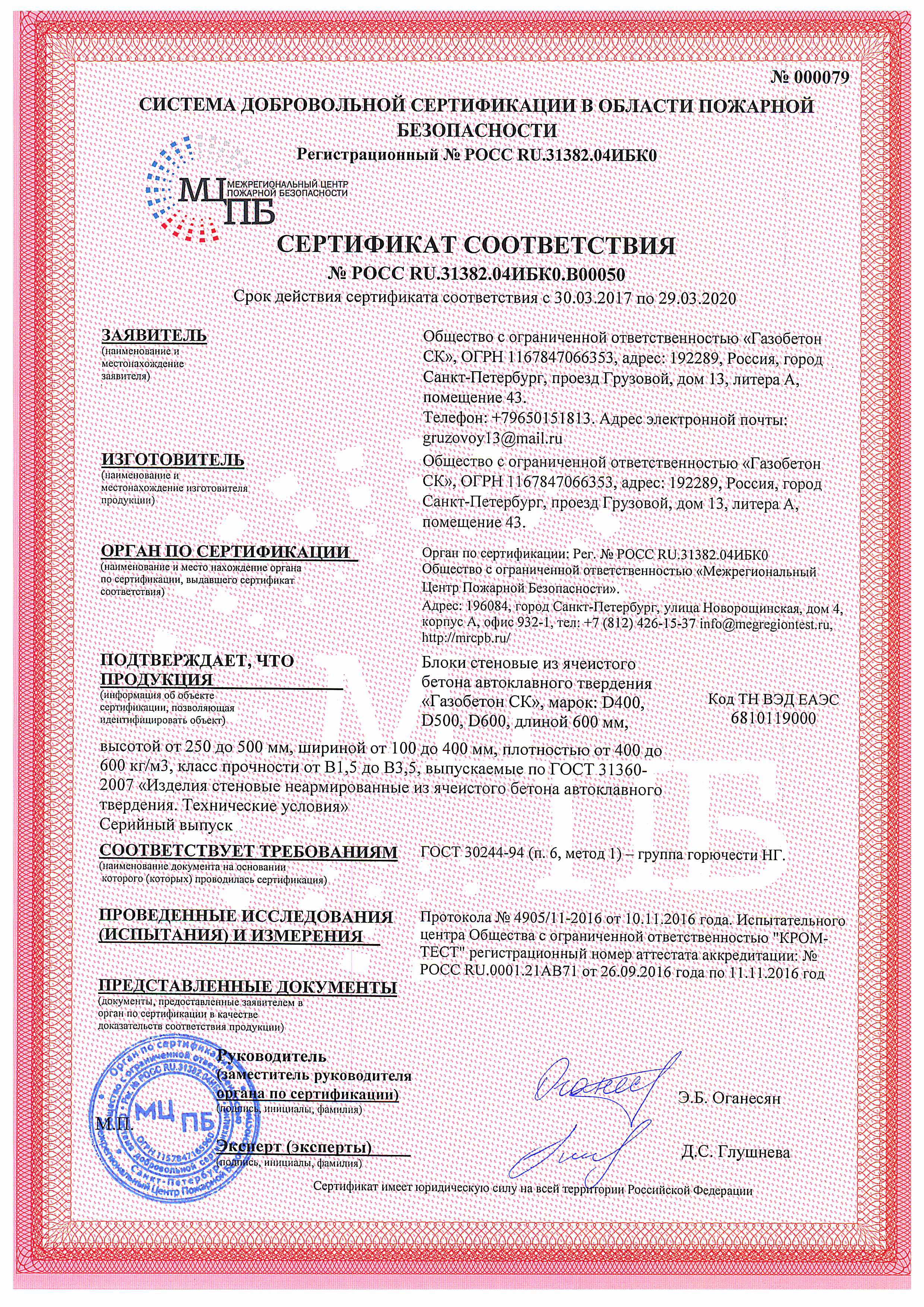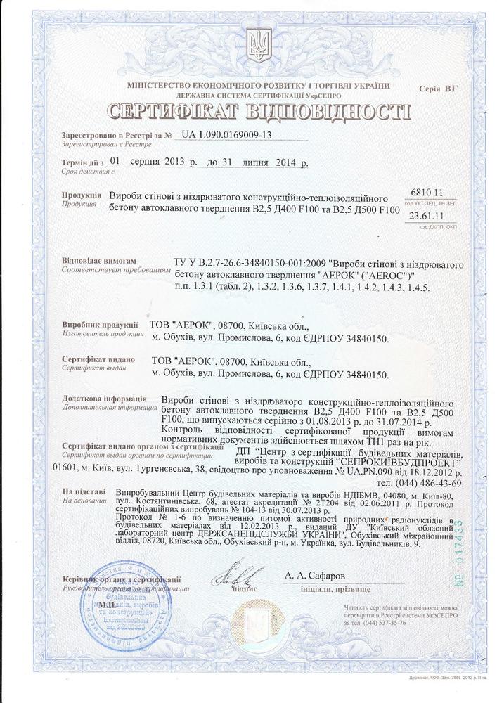 Сертификаты на газобетонные блоки